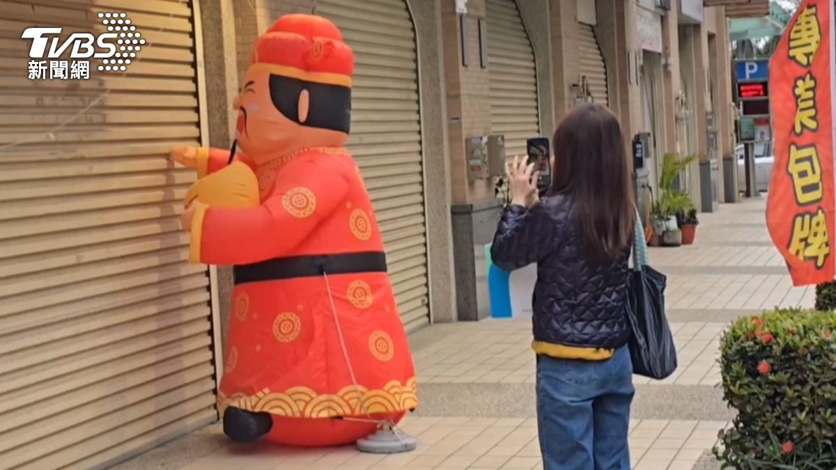 有民眾特別前來拍下「敲門的財神爺」。(圖/TVBS)