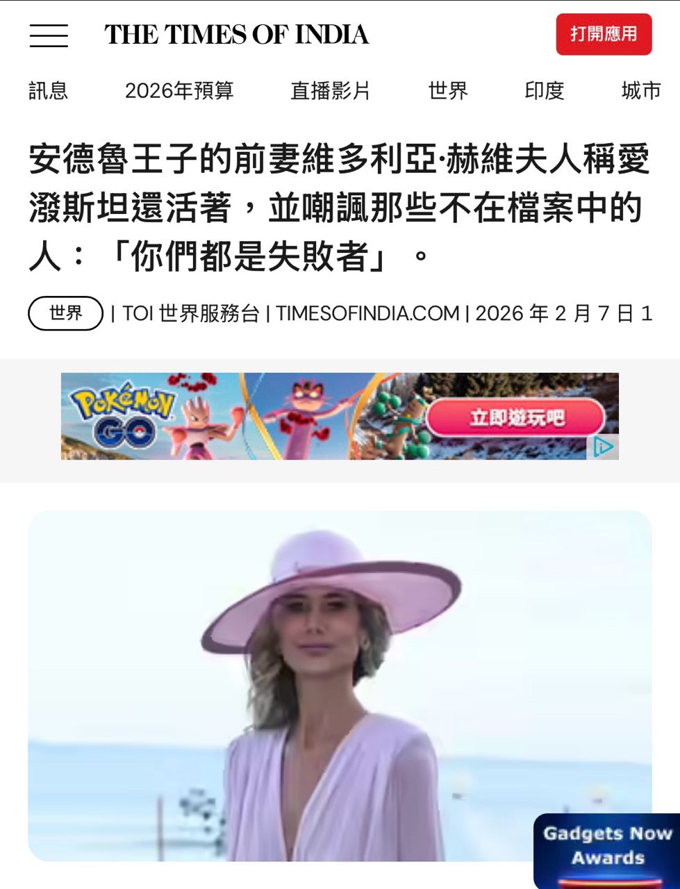 看到網路上有轉載英國獨立報新聞,英國被廢王子安德魯前女友Victoria Hervey表示任