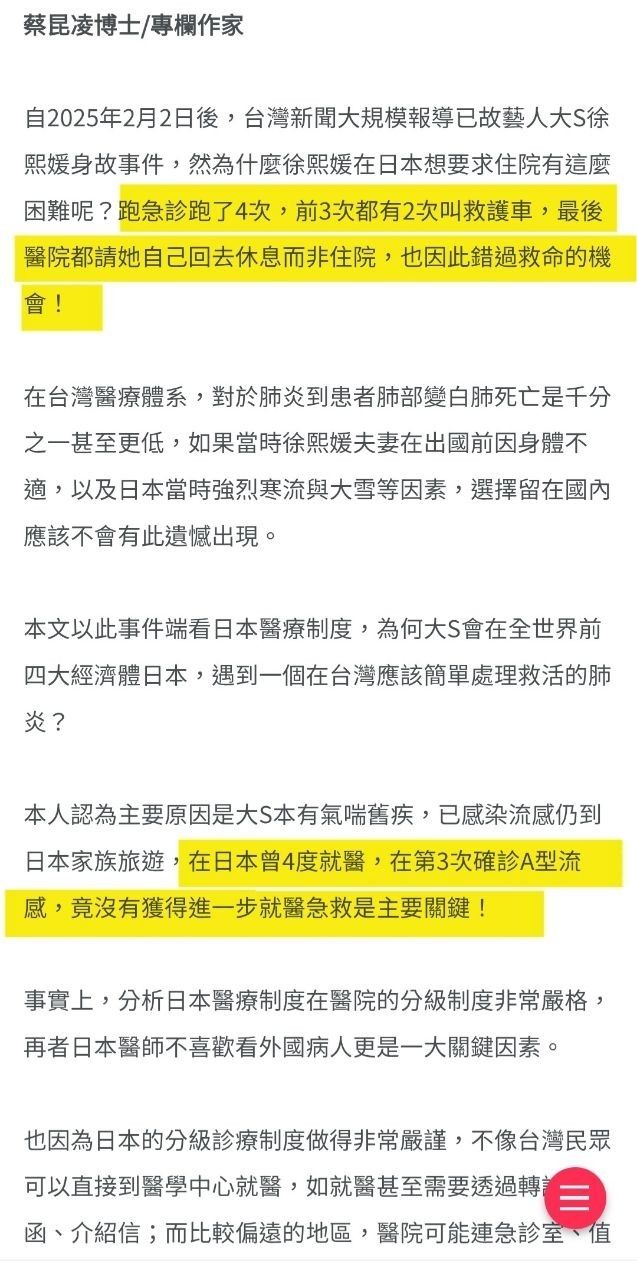 [問卦] 當初大S逝世會不會覺得日本醫療水準低落