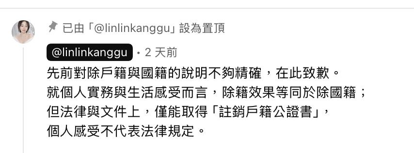 : ?FB上一堆人說楊林說可以除國籍??