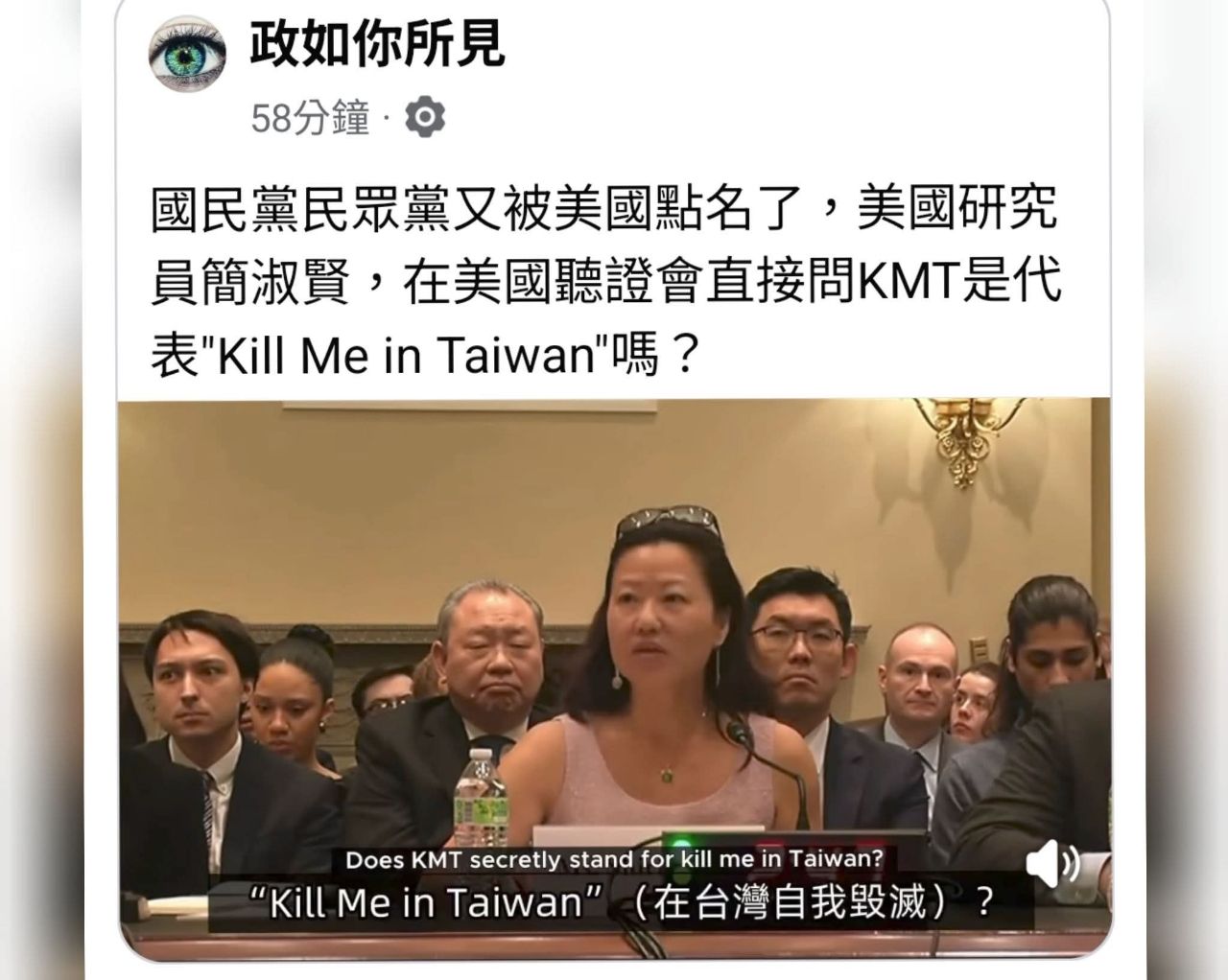 對於簡淑賢批KMT是Kill Me in Taiwan。牛煦庭表示,美國聽證會會邀請各式各樣的人,