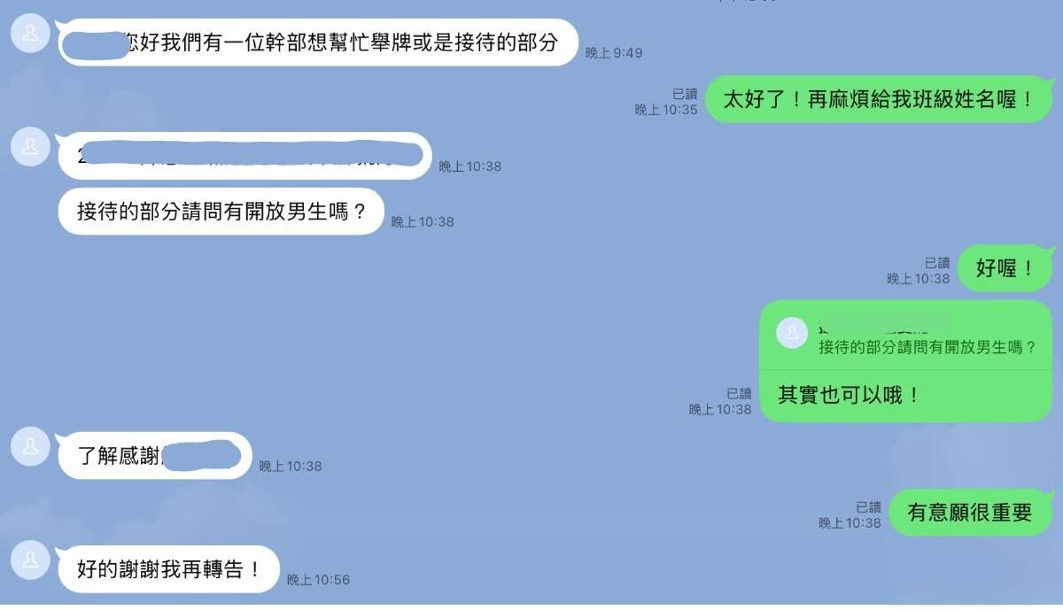 : 學生轉傳對話後,有人認為對話內容不妥,截圖放上網路瞬間炸鍋:「接待校
