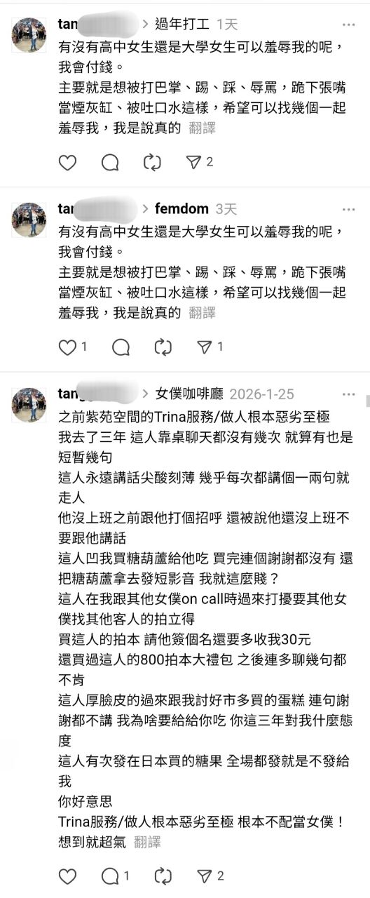 而且你他媽這幾天陸陸續續 一直不停的想花錢徵求高中、大學女生來羞辱你???