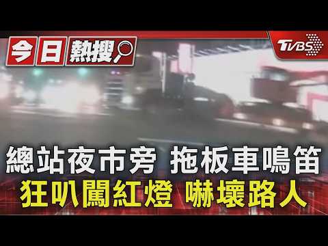 事發當晚7點多,這輛拖板車行經左轉車道時,後方駕駛起步跟上後突然開始閃警示燈,並猛按喇叭。不僅轉彎時持續鳴笛,行經路口時明明已是紅燈,駕駛仍大老遠就開始閃燈按喇叭,隨後直接闖越紅燈通過,讓路口行人看得目瞪口呆。