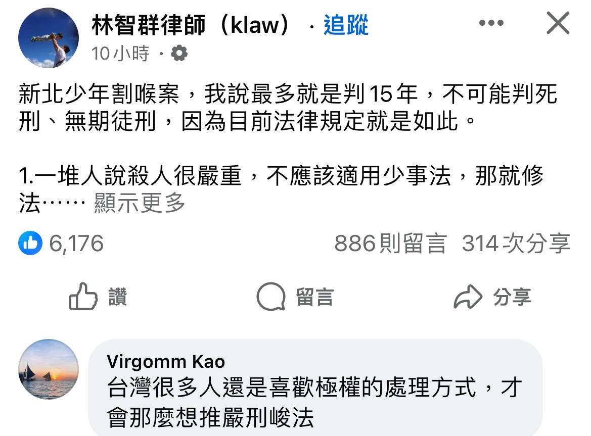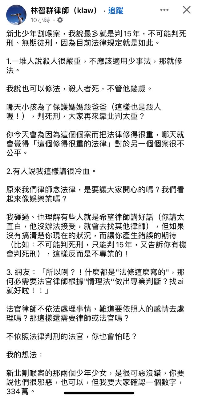 林智群律師:想讓割喉乾哥重判甚至致死的,都是踐踏人權、阻礙司法改革與進步價值,