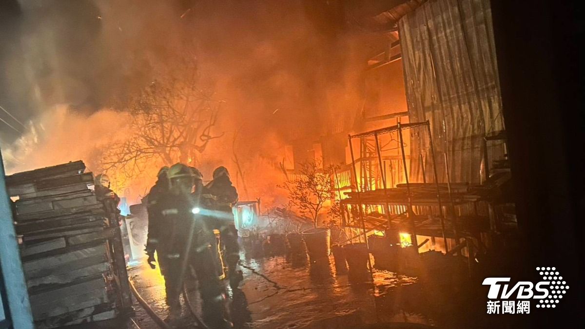 火勢蔓延速度迅速,為防止周圍住宅波及,警消合作部署水線、疏散民眾。(圖/TVBS)