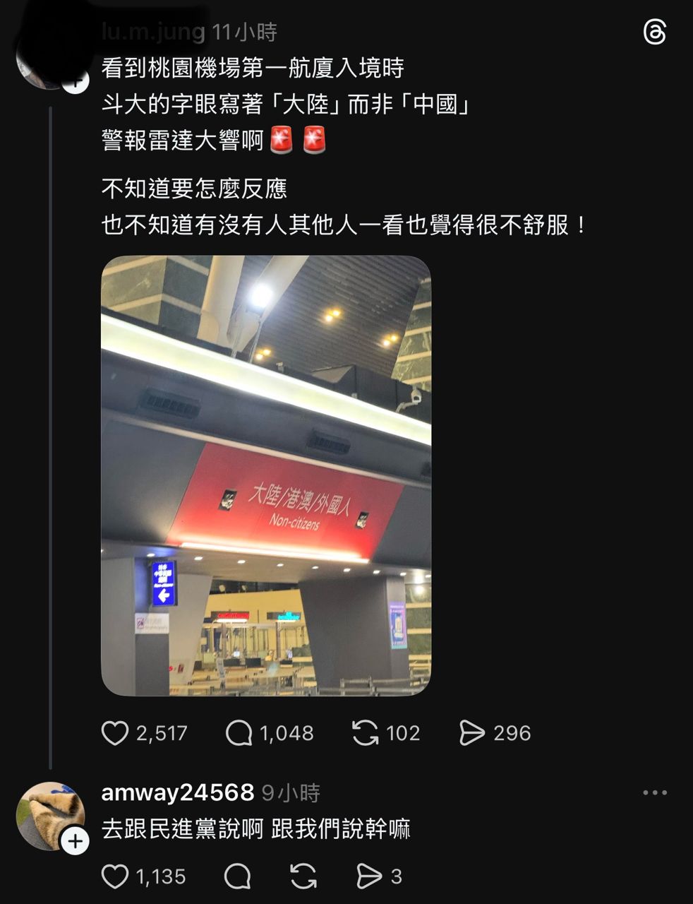 作者 outsi (outsi)標題 [問卦] 脆上熱議:為什麼入境寫大陸非中國,也時間 Thu Feb 19 23:49:24 2026