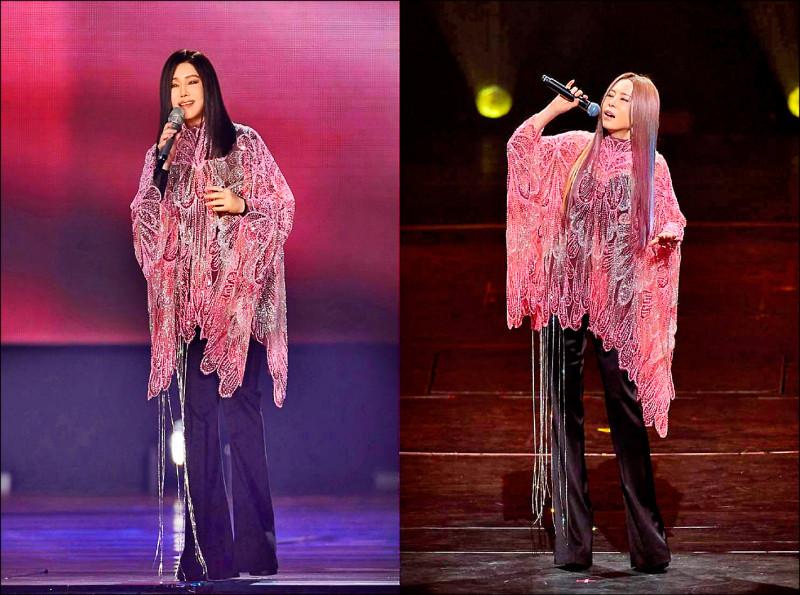 江蕙(左)先前在演唱會穿粉紅色秀服,昨天被妹妹江淑娜借走。(寬宏藝術提供)