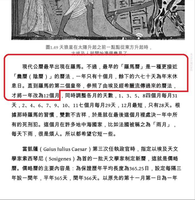 埃及經希臘流傳過來的曆法,才將一年改為 12 個月,同時調整各月的天數, 1、3、5、