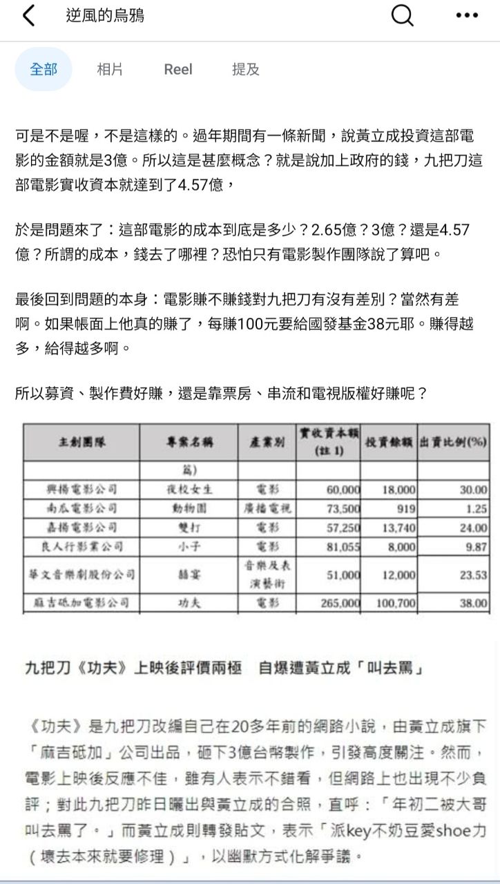 記得沒錯...功夫成本三億元