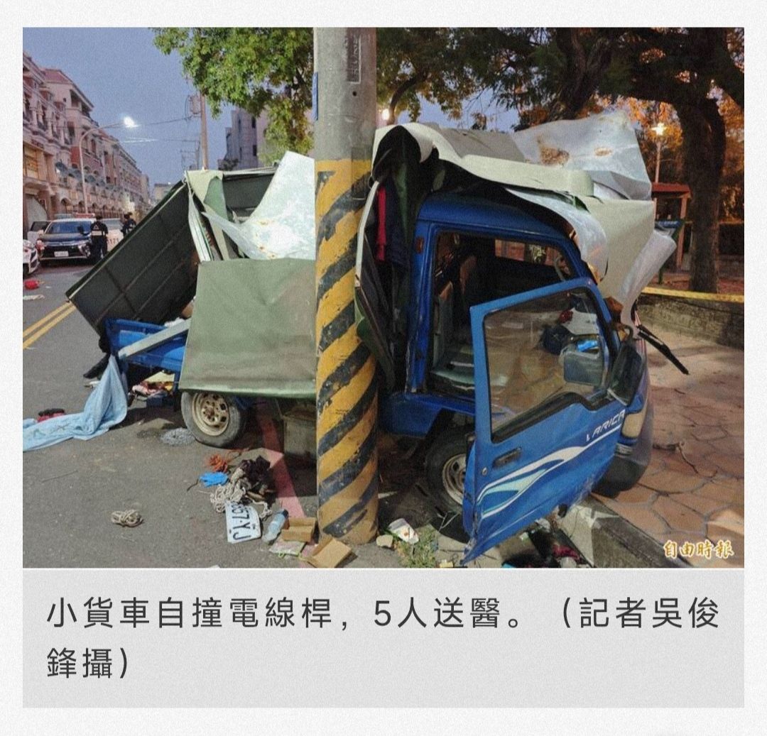 ,小貨車上5名乘客受傷,分別送成大、新樓醫院救護。