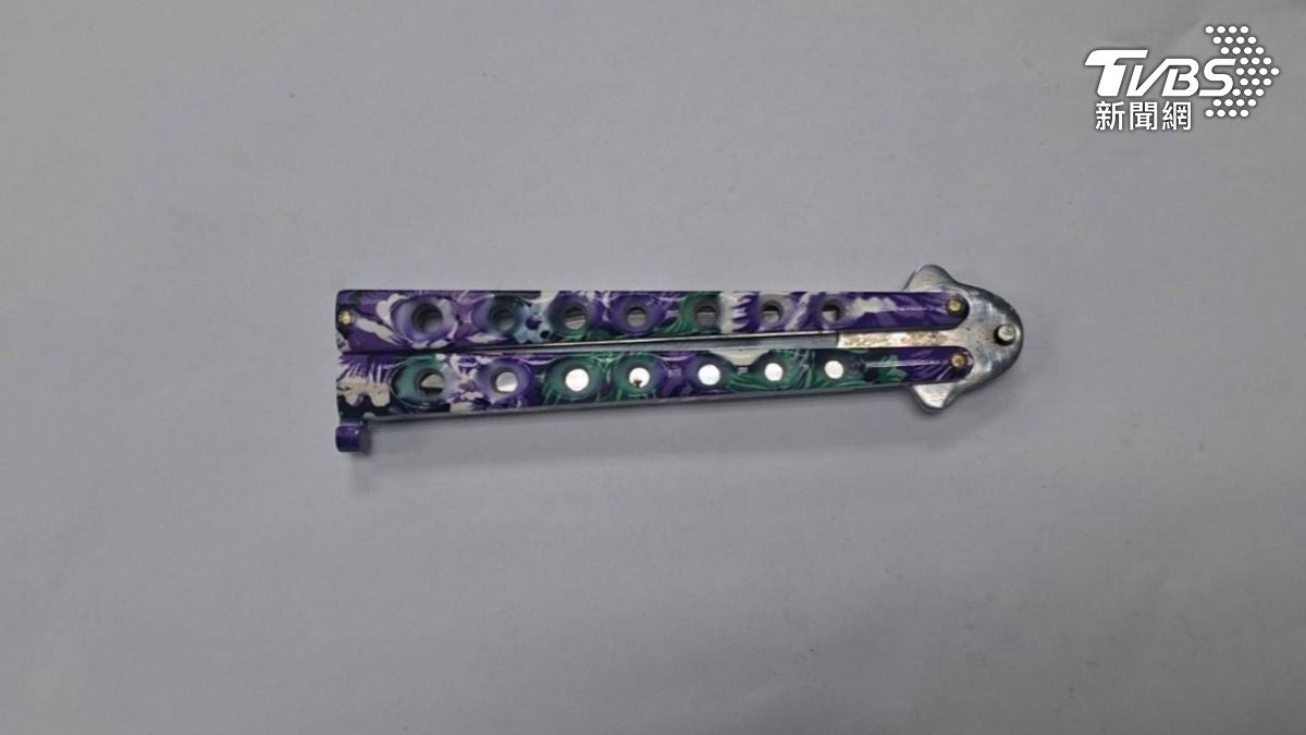 警方查扣黃男攜帶的蝴蝶刀。(圖/TVBS)