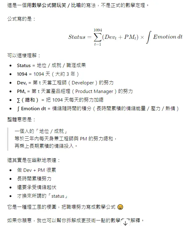 作者 zangetsu9006 (台灣是平行時空)標題 [問卦] ChatGPT說只要是理工人都能看懂這條公式時間 Wed Feb 25 19:03:39 2026