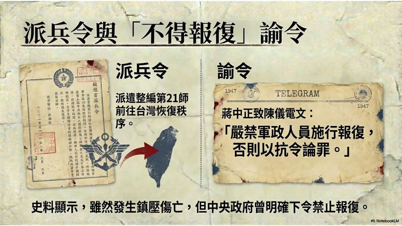 還有老蔣總統派出兵台灣鎮壓暴民的電報內容!