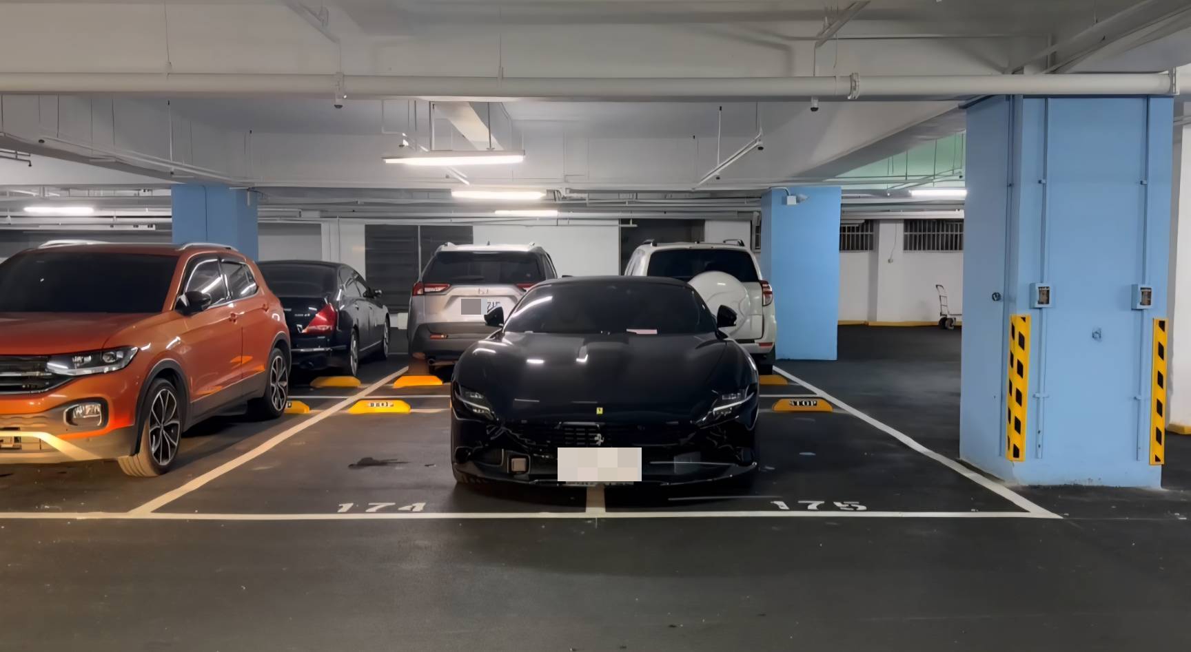 拉利羅馬跑車,占了兩個車格停放,質疑「有錢人炫富嗎?」車內人員表示有付