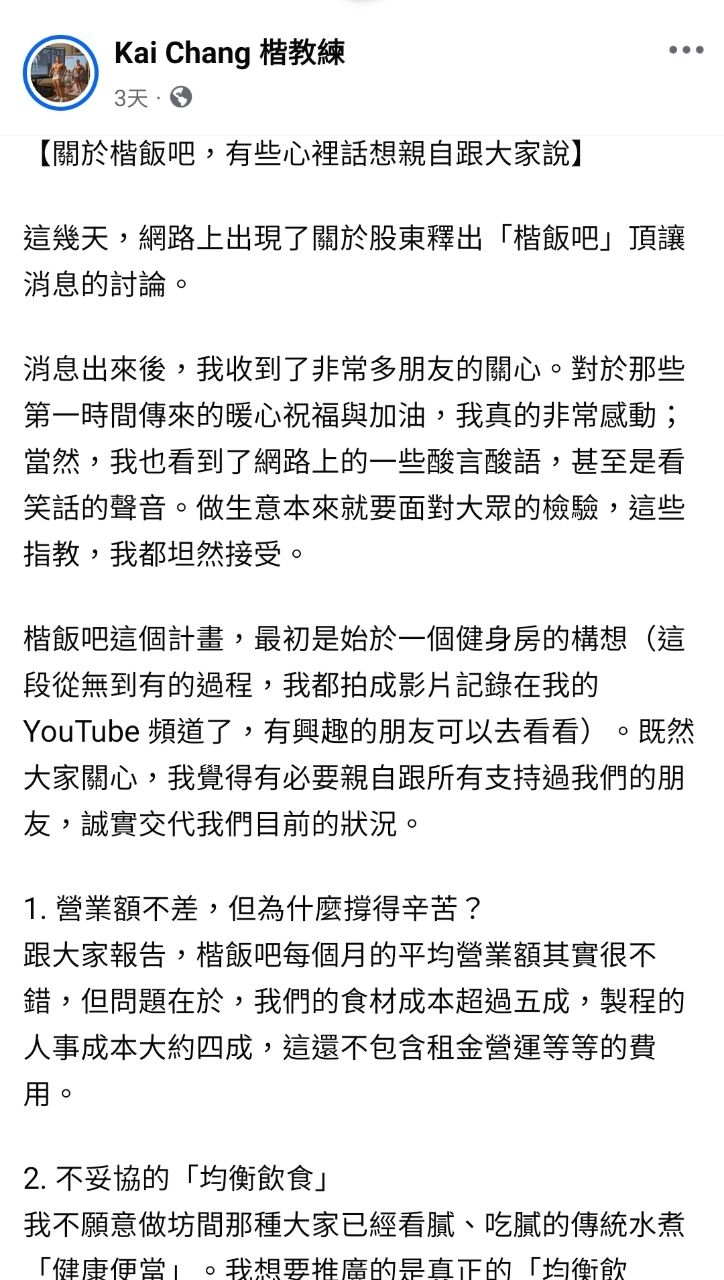 作者 a91153456 (追逐太陽的阿呆)標題 [問卦]楷教練:店營業額很高 但是我根本沒賺錢時間 Fri Feb 27 17:57:27 2026