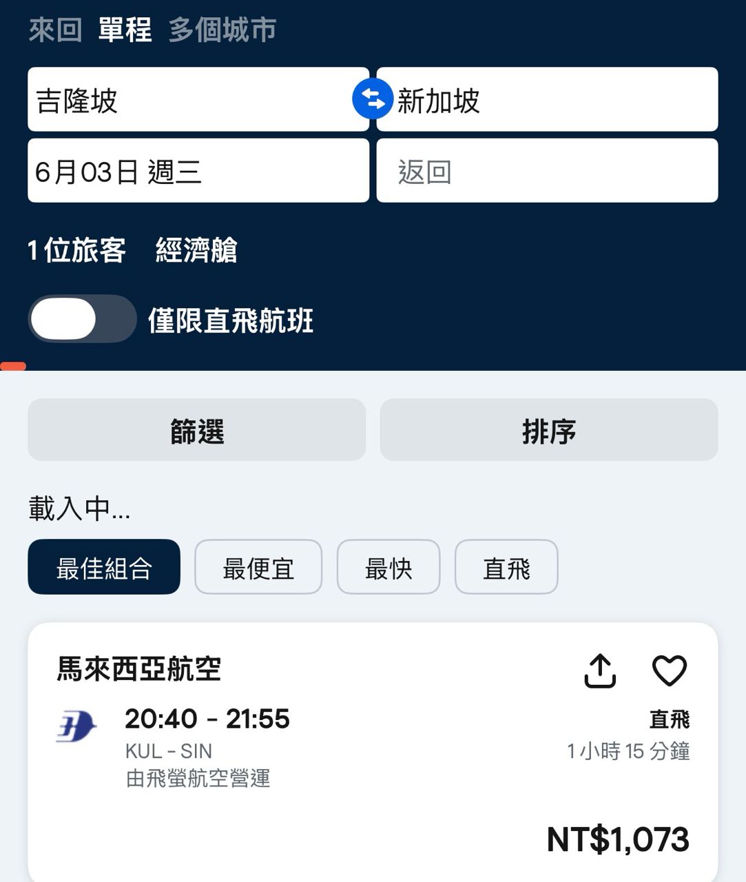 如題,新加坡到吉隆坡的距離搭飛機只要約1小時多,距離約350公里,大約台北到高雄的