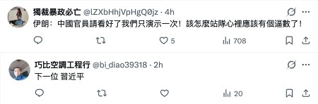 還有網友藉此調侃中共官員:「伊朗:中國官員請看好了我們只演示一次!該怎麼站隊心