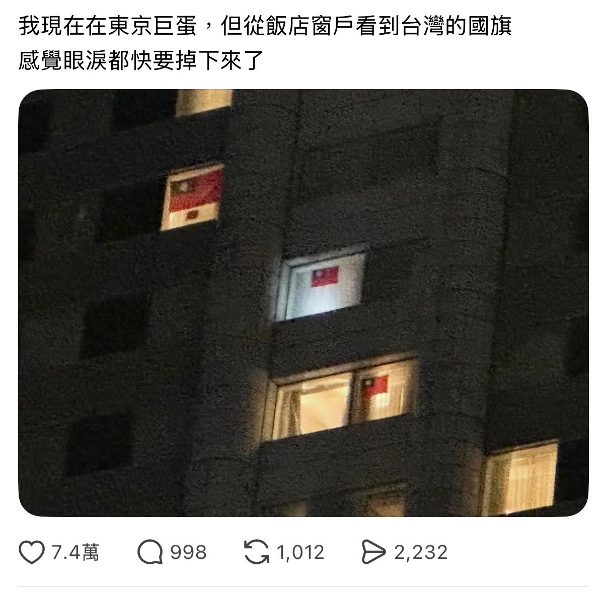 [問卦] 脆:東京巨蛋外的飯店窗戶有台灣國旗(哭 - Gossiping 板