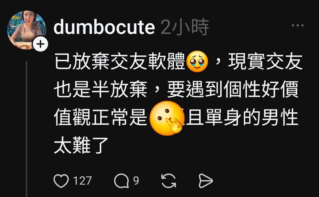 脆友:要找到符合價值觀,且單身的男性還是太難了!
