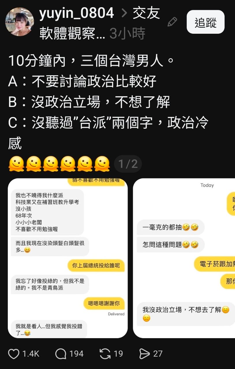 [問卦] 脆熱議:交友軟體如何十分鐘淘汰三個男人 - Gossiping 板