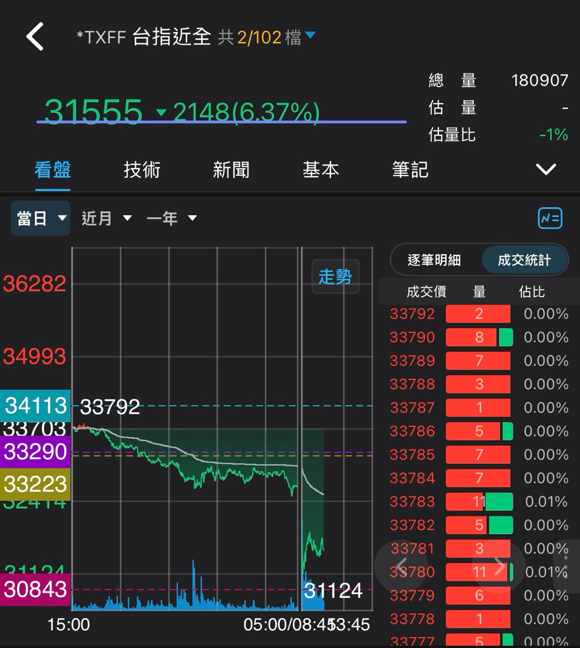 股市今天跌1800點