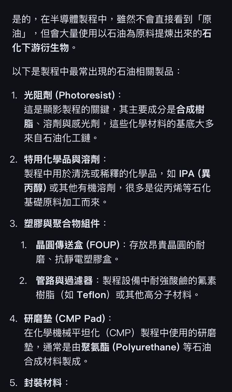 [問卦] 沒人發現半導體製程也需要石油原料?