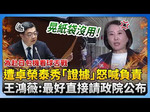 為赴日包機看球舌戰!遭卓榮泰秀「證據」怒喊負責 王鴻薇反酸「晃紙袋沒用」:最好直接請政院公布 @ChinaTimes