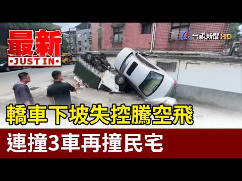 3.完整新聞標題:基隆女駕車失控如「保齡球」撞3車 輪胎飛掛屋簷上