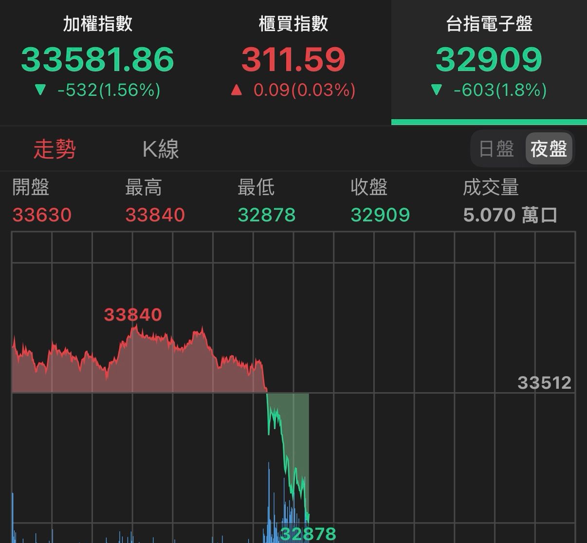 台指夜盤馬上跳水