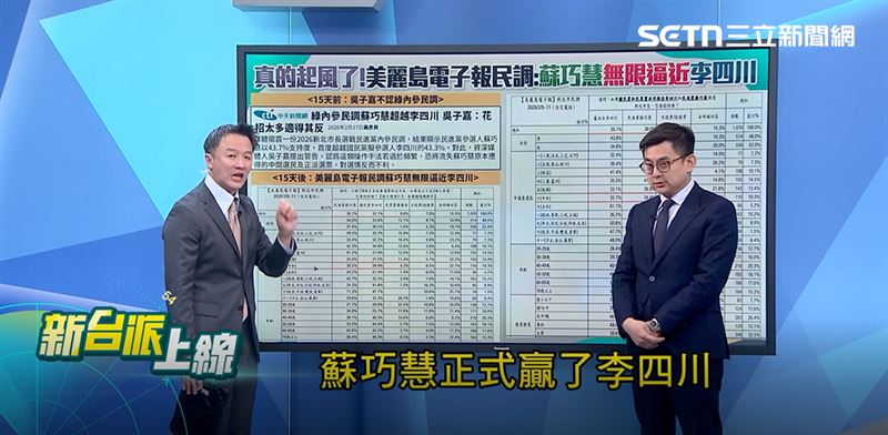 主持人李正皓在節目中指出,約莫15天前,民進黨流出一份內參民調顯示蘇巧慧領先,當