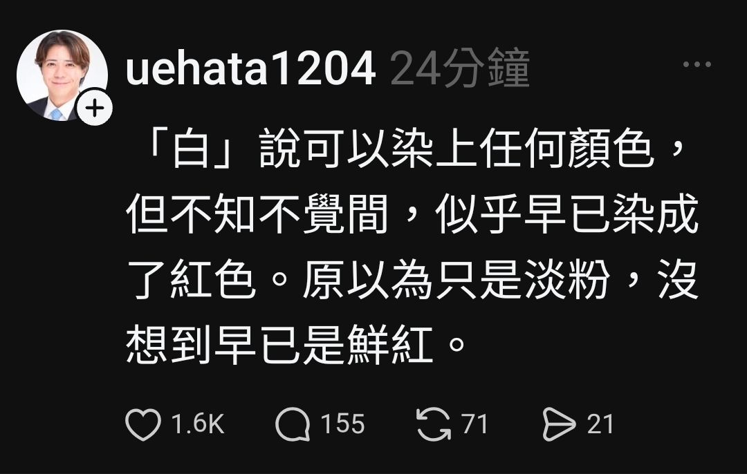 作者 fony1029 (.)標題 Re: [問卦] 日議員:白色早已被染成紅色時間 Fri Mar 13 10:49:12 2026