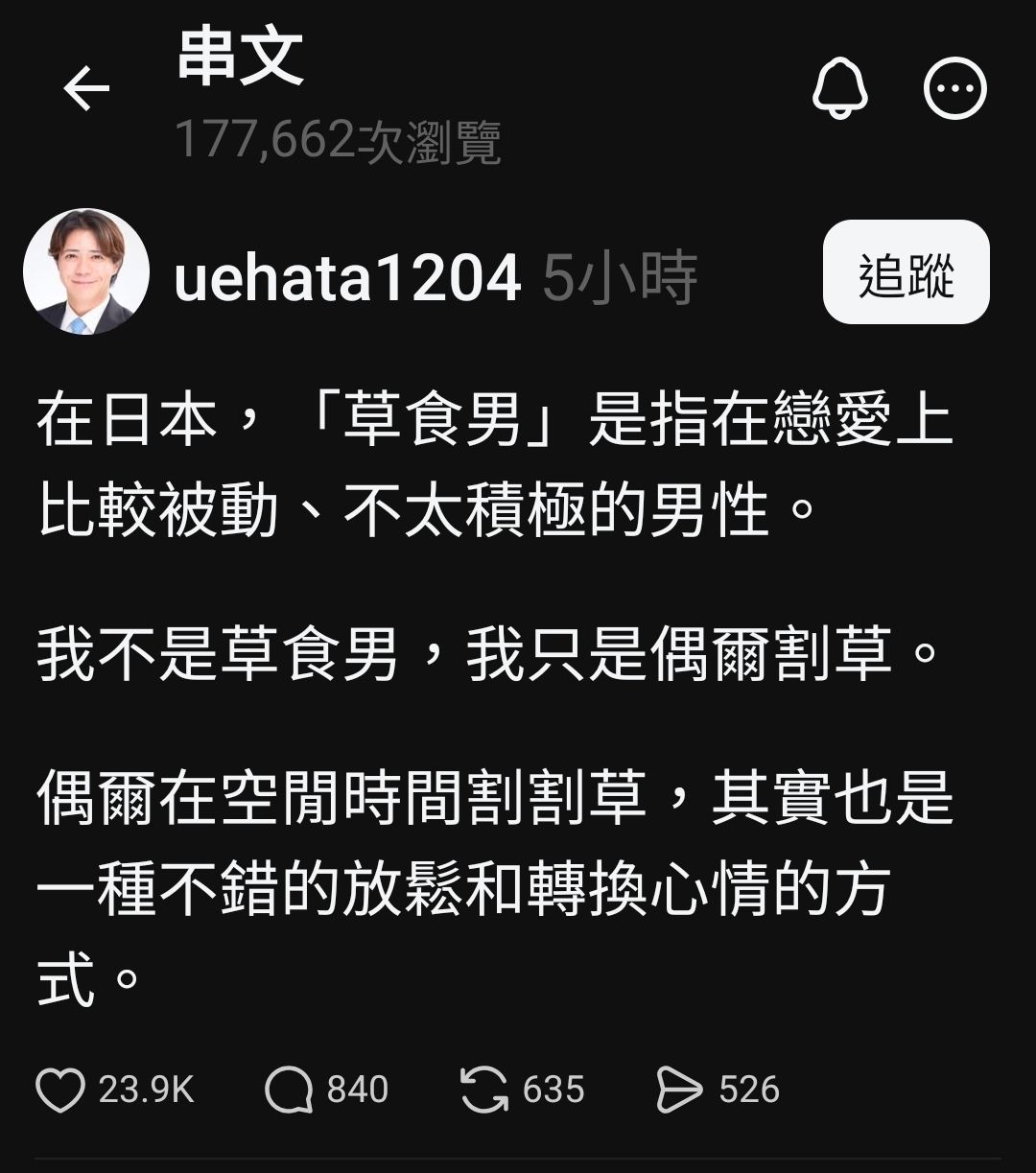 但我不是草食男,只是偶爾割割草