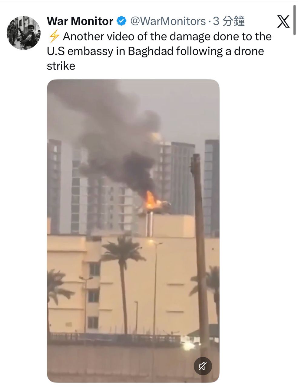 : 剛剛X最新消息,巴格達美國大使館屋頂直升機停機坪,遭到伊朗無人機攻擊