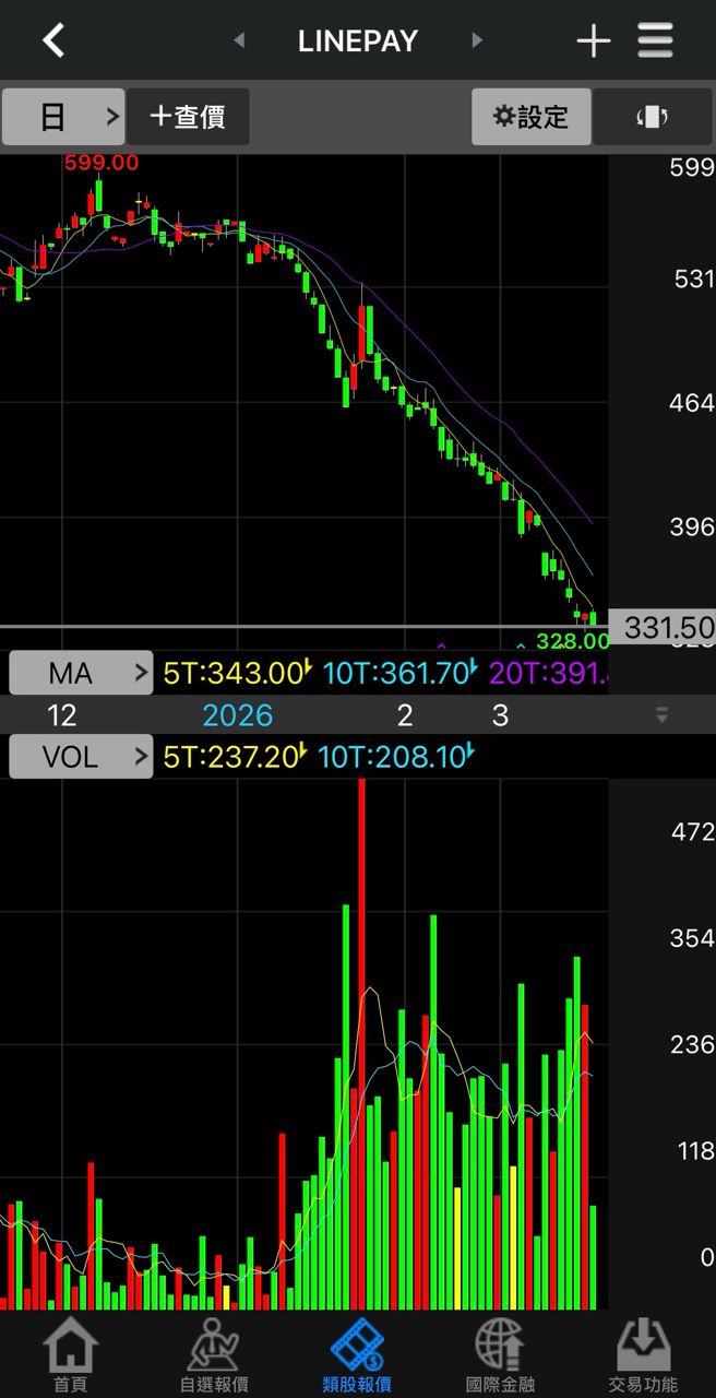 Linepay又跌了 無聊打開線圖