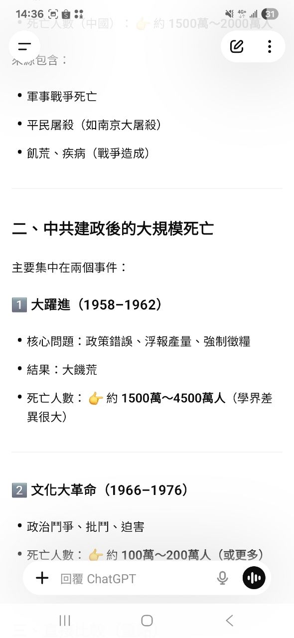 太平天國不講,就拿毛主席統治下的近代中國,光文革和大饑荒死了4000萬~5000萬人