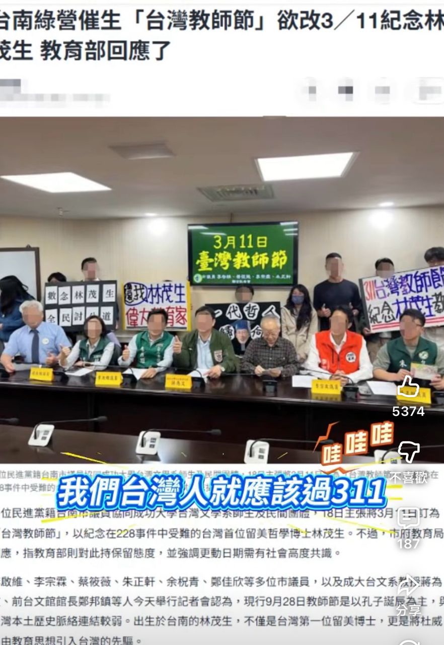 [爆卦] 228的林茂生311受難綠營促訂為台灣教師節