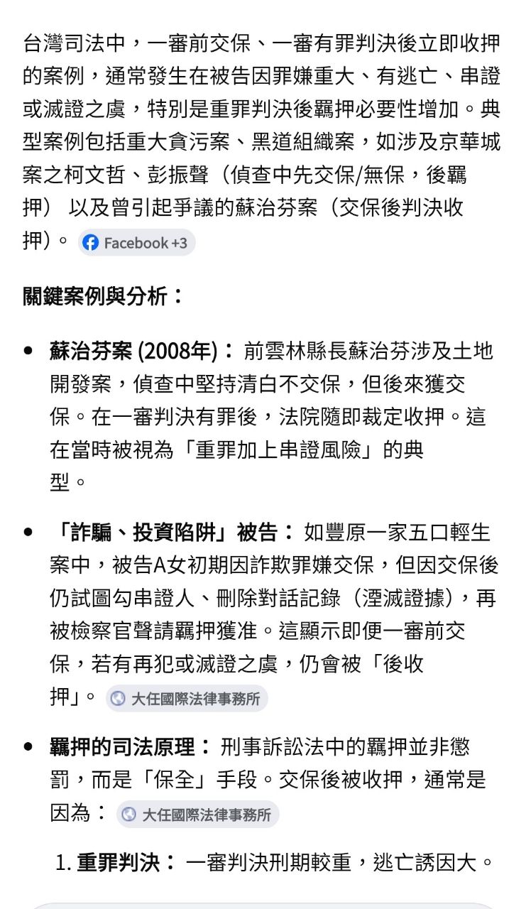 然後一審有罪 雖然可上訴 但立馬在庭上被當場抓進去先關再說的例子嗎?