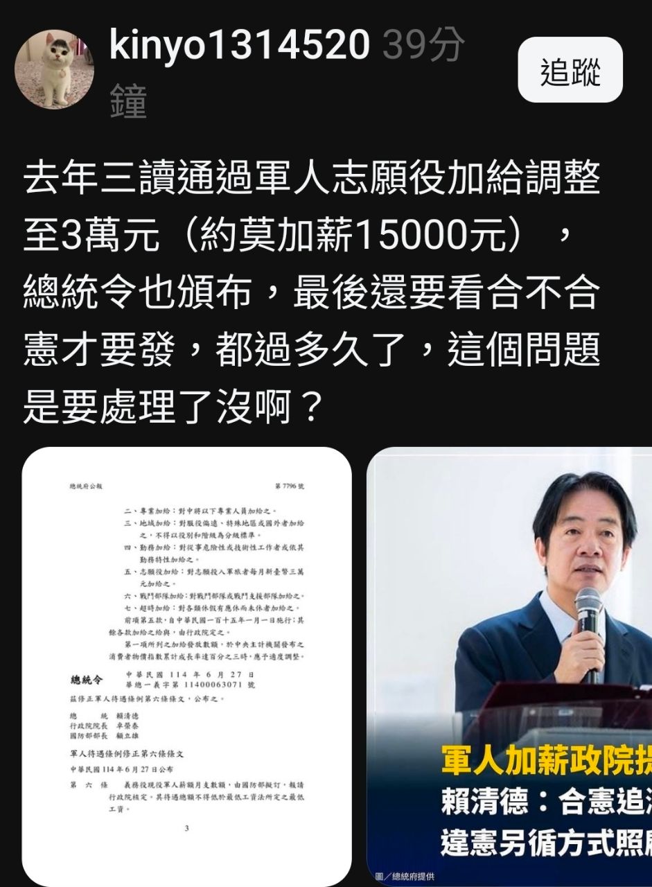 [問卦] 軍人加薪是不是也可以依法行政了?