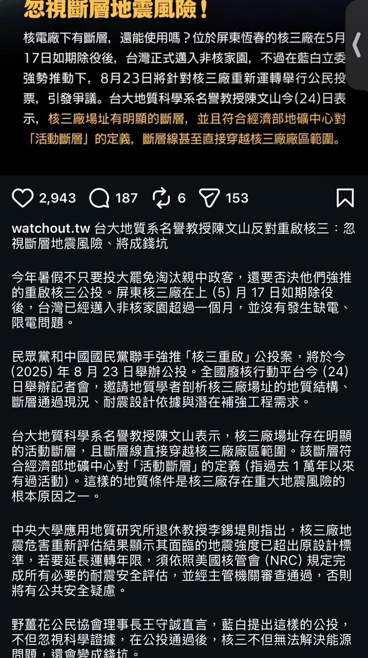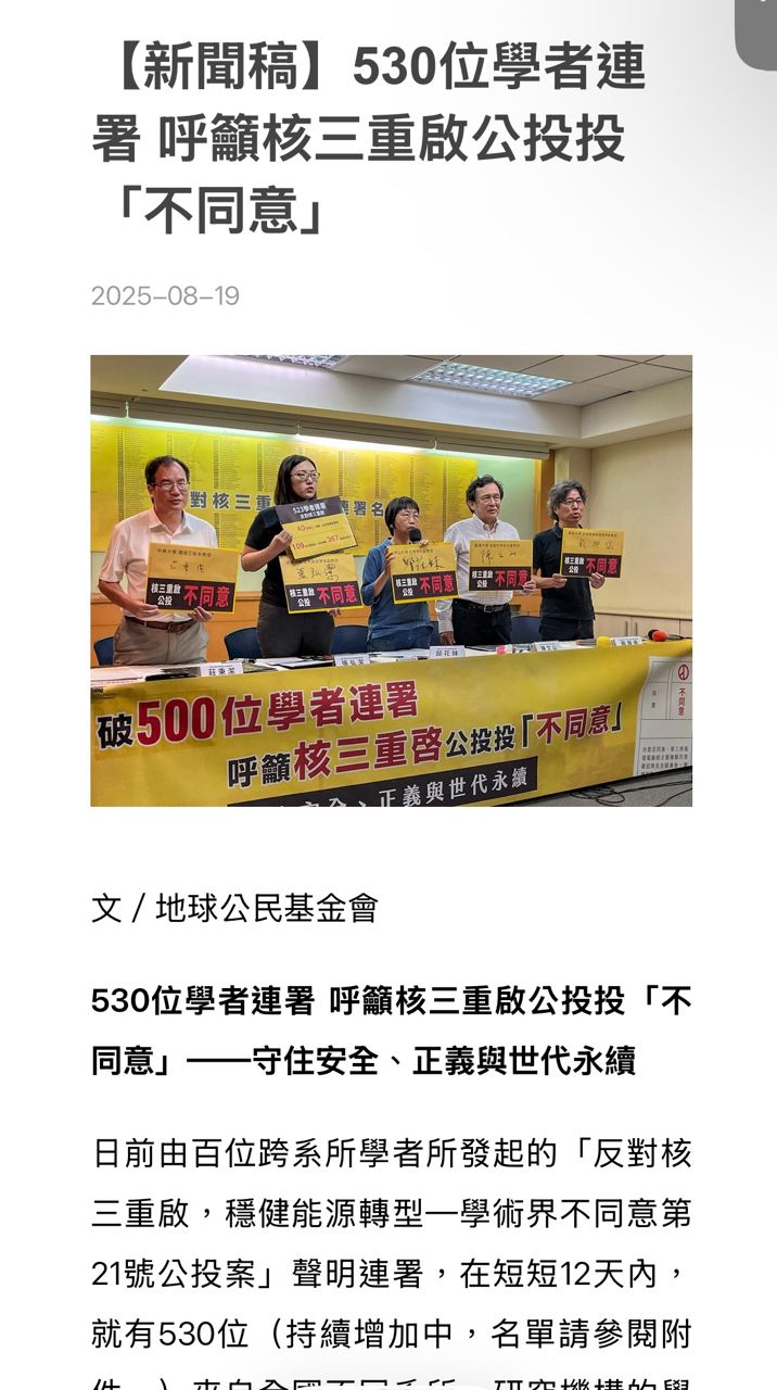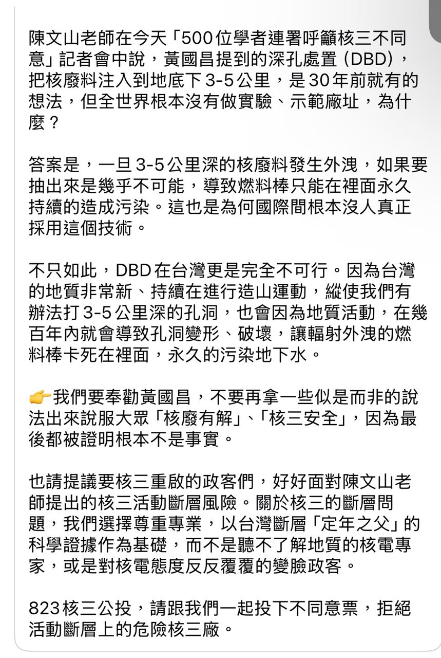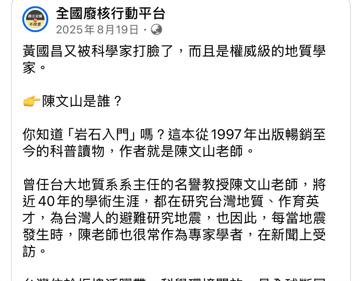 台大陳文山教授反對核三重啟