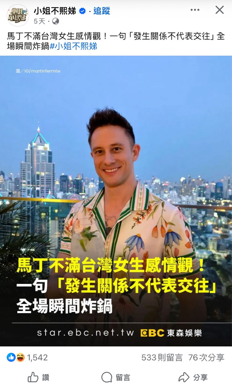 [問卦] 馬丁不滿台女感情觀 一句話全場炸鍋 - Gossiping 板