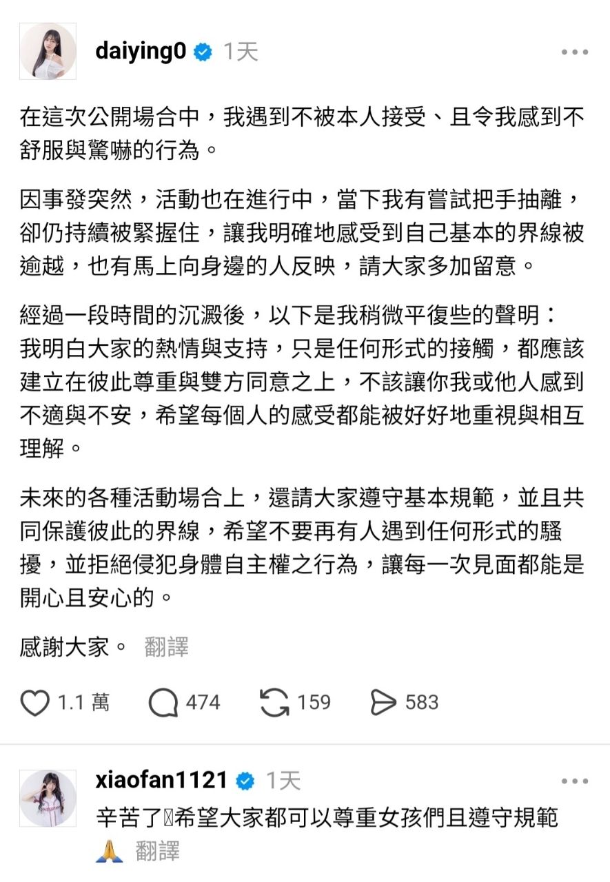 在參加擊掌活動時被一名男子疑似握住手,當下我有嘗試把手抽離 卻仍被持續緊握,讓