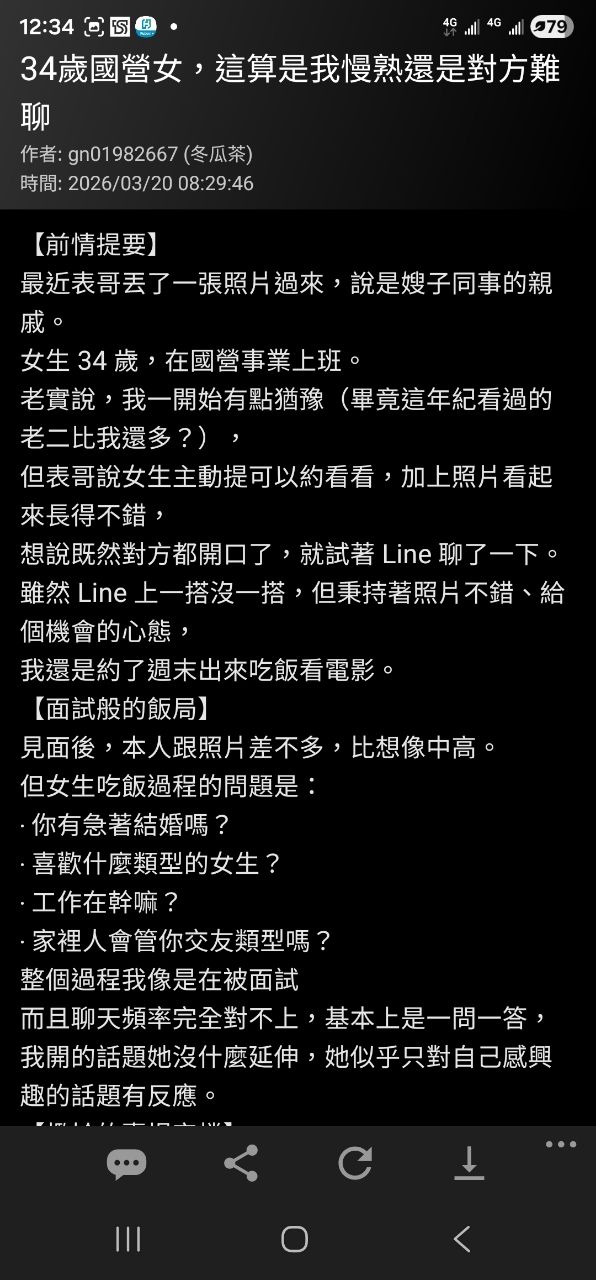 [問卦] 34歲國營女,這算是我慢熟還是對方難聊 - Gossiping 板