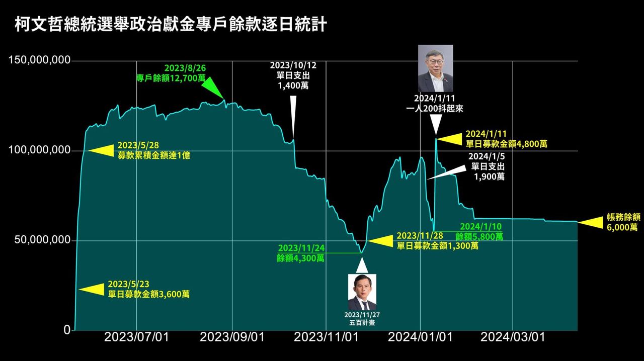 選前兩天募款五千萬根本花不完,結果最後結餘剩下六千萬,