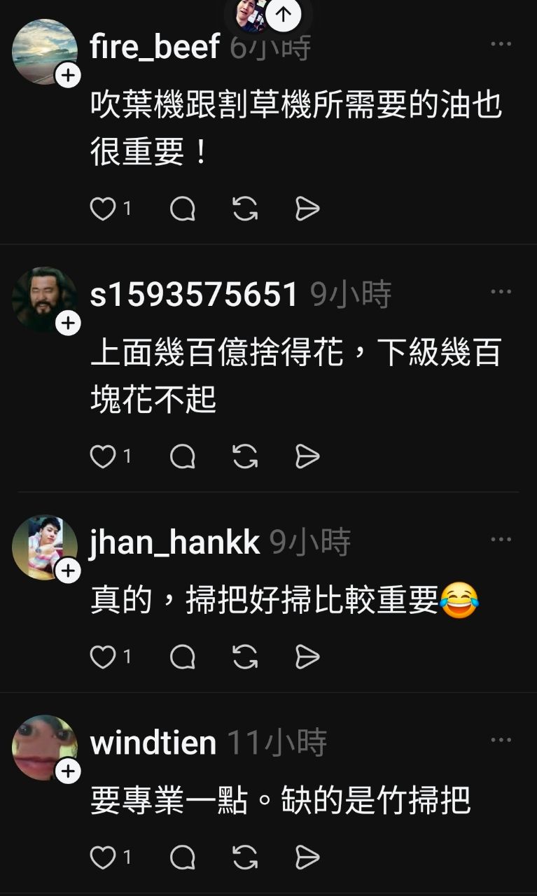 脆友:吹葉機跟割草機的油也很重要...
