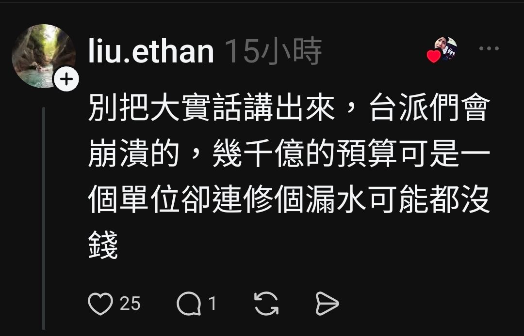 脆友:幾千億的預算,修個漏水都沒錢...