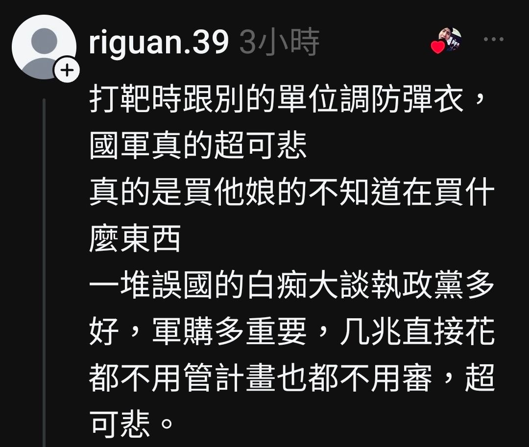 脆友:打靶還要跟別的單位調防彈衣....還要輪流穿.....