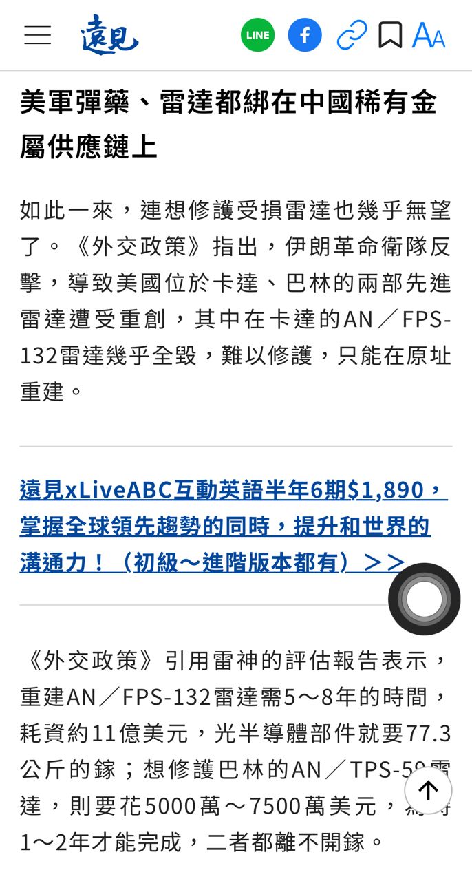 因為關鍵金屬被中國卡脖子,所以根本生產不出來,雷達、預警機打一架少一架