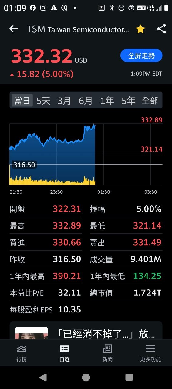 台積電ADR大漲五趴一隻穿雲劍是怎麼了啦,該不會是有好消息了吧?期待回到兩千塊的