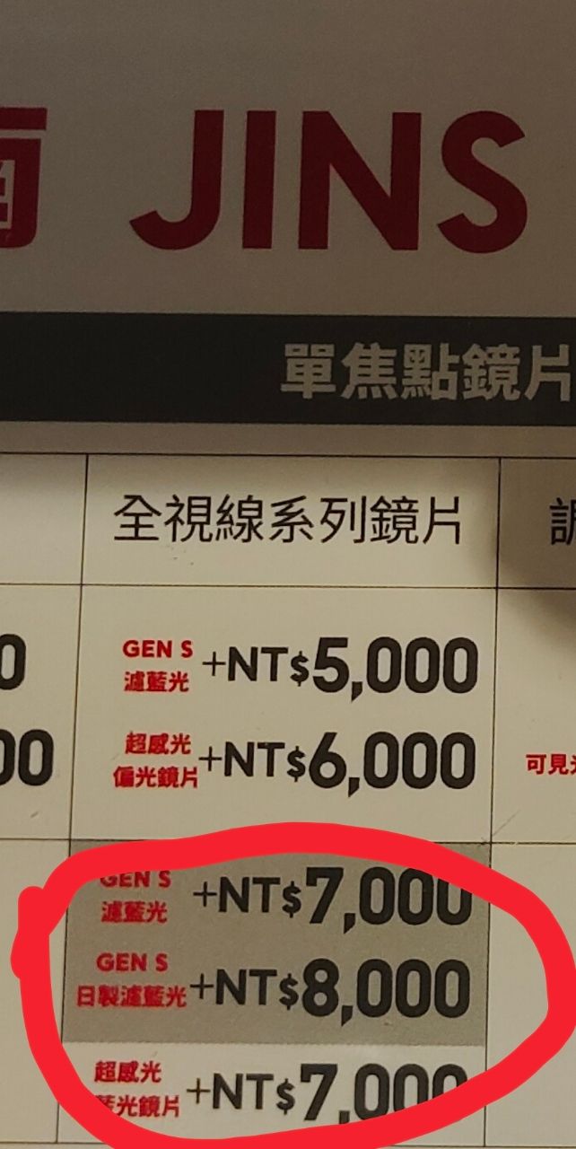 : JINS眼鏡我配一支日製鏡片7千的